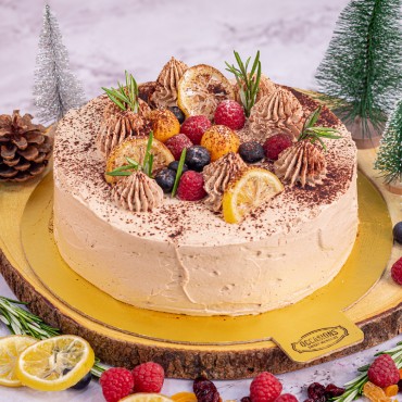 A festive spiced chocolate cake featuring soft and moist chocolate sponge, silky mousse, cinnamon-cream, and a sweet tutti-frutti filling—rich, warm, and perfect for Christmas celebrations...